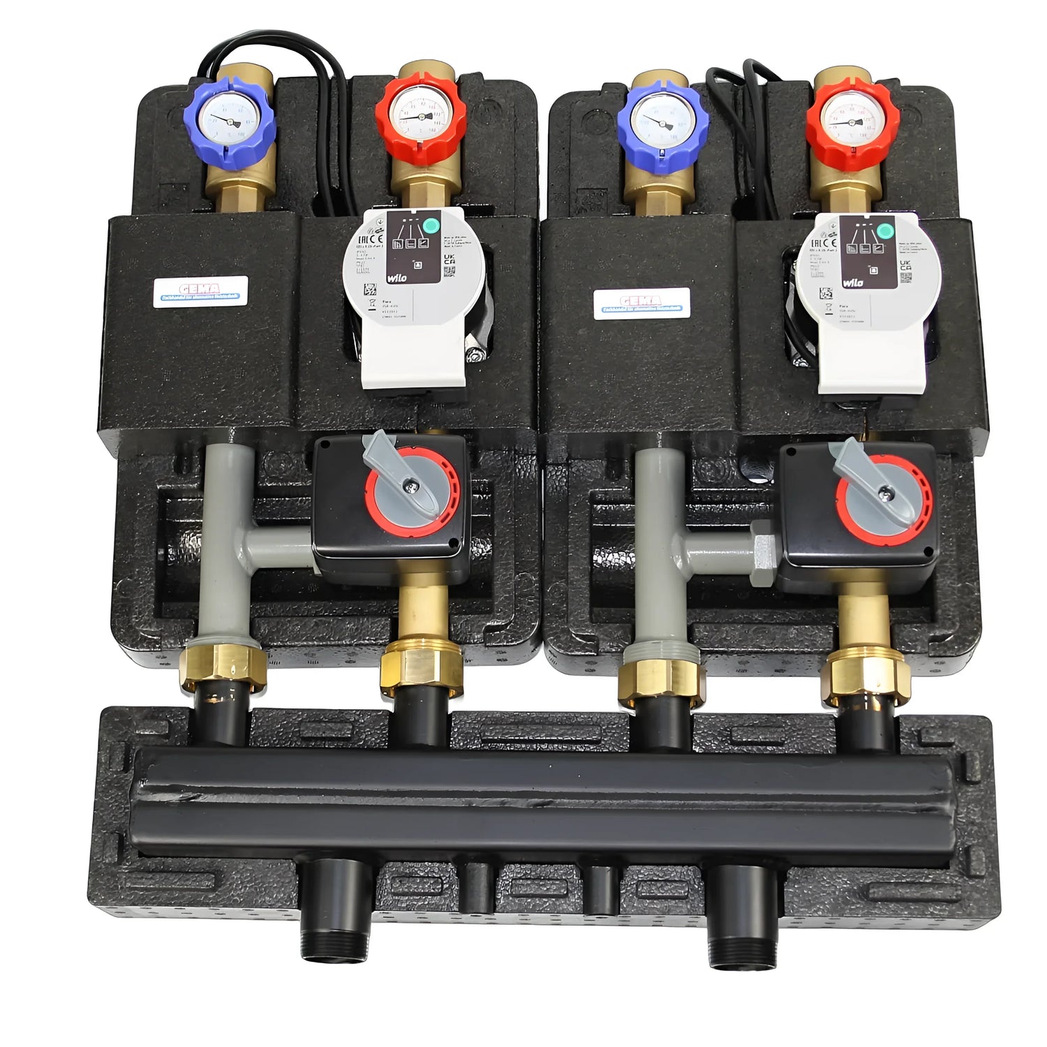 Díky kompaktní konstrukci a předmontovaným kulovým uzavíracím ventilům je integrace do stávajících systémů vytápění, chlazení nebo procesního ohřevu snadná. Teploměry v přívodním a vratném potrubí poskytují nepřetržité přesné měření teploty, zatímco zpětný ventil na přívodním potrubí zabraňuje nežádoucímu zpětnému toku.