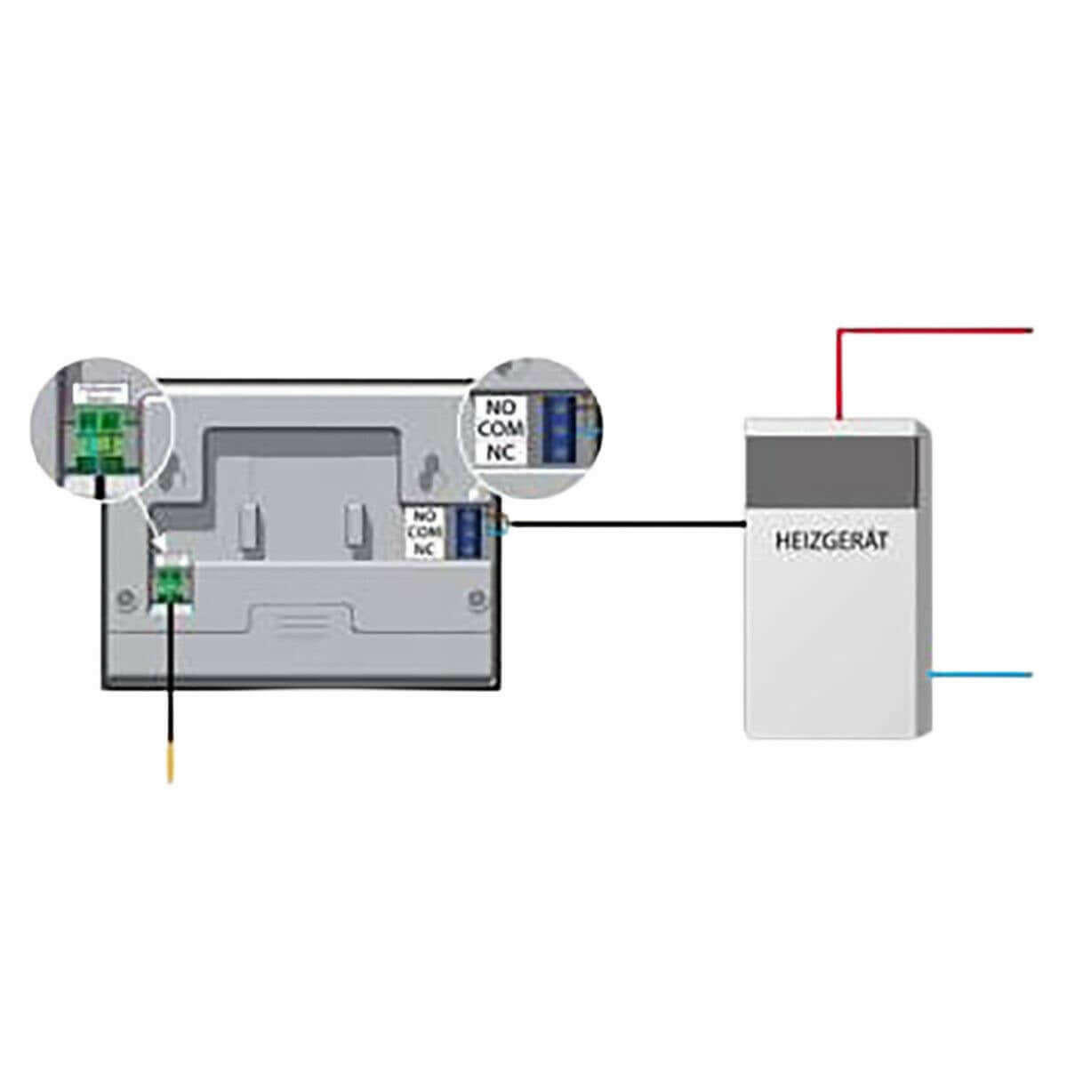 Vægmontering er hurtig og nem takket være det overflademonterede design. Styringen er tilsluttet varmelegemet via et to-tråds kabel og kan nemt installeres, selv af professionelle installatører. Strømforsyningen kommer fra to 1,5 V AA-batterier, hvilket gør enheden særligt fleksibel.