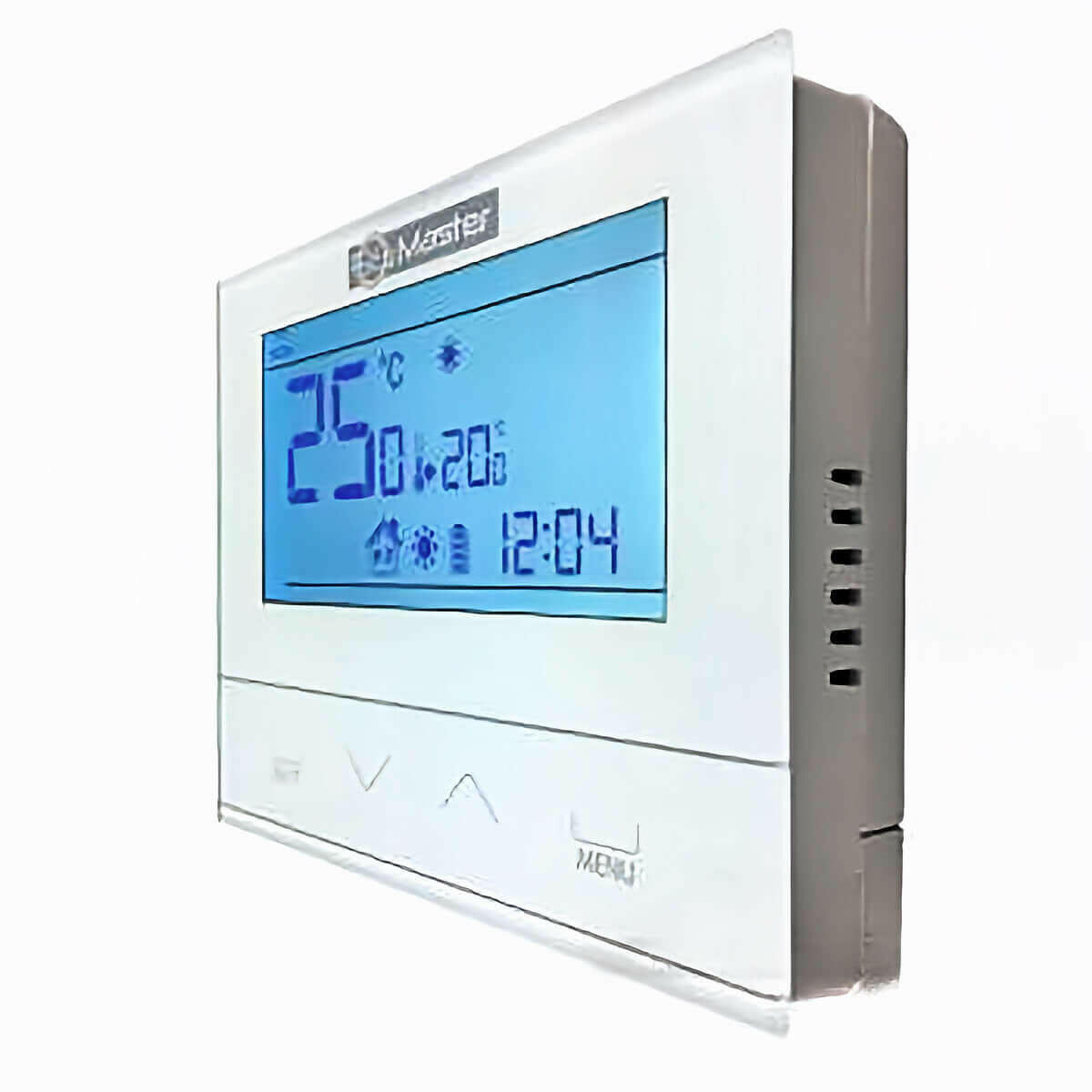 Master R.23 rumcontrolleren tilbyder dig en praktisk og effektiv løsning til styring af dine varmeapparater. Med sin integrerede ugentlige styring, stilfulde design og brugervenlige betjening er denne termostat ideel til brug i bolig- eller erhvervslokaler. Vægmontering er hurtig og nem takket være dens overflademonterede design.