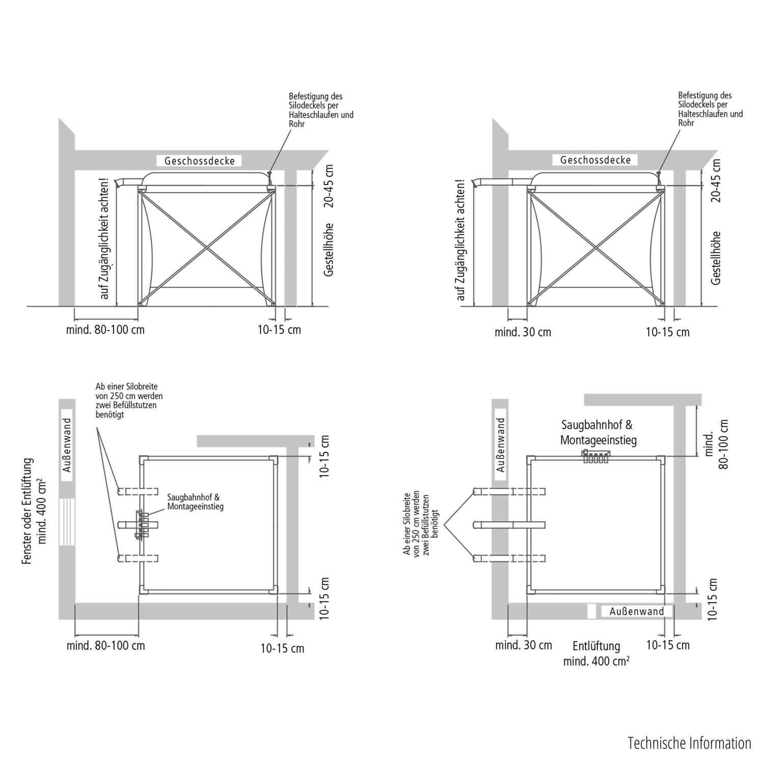 Pelletsilo FLACHBODEN inkl. Gestell - 1.9 x 1.9 m / 2.1 bis 2.4 m ist auf Lager und wird versandt, sobald es wieder verfügbar ist