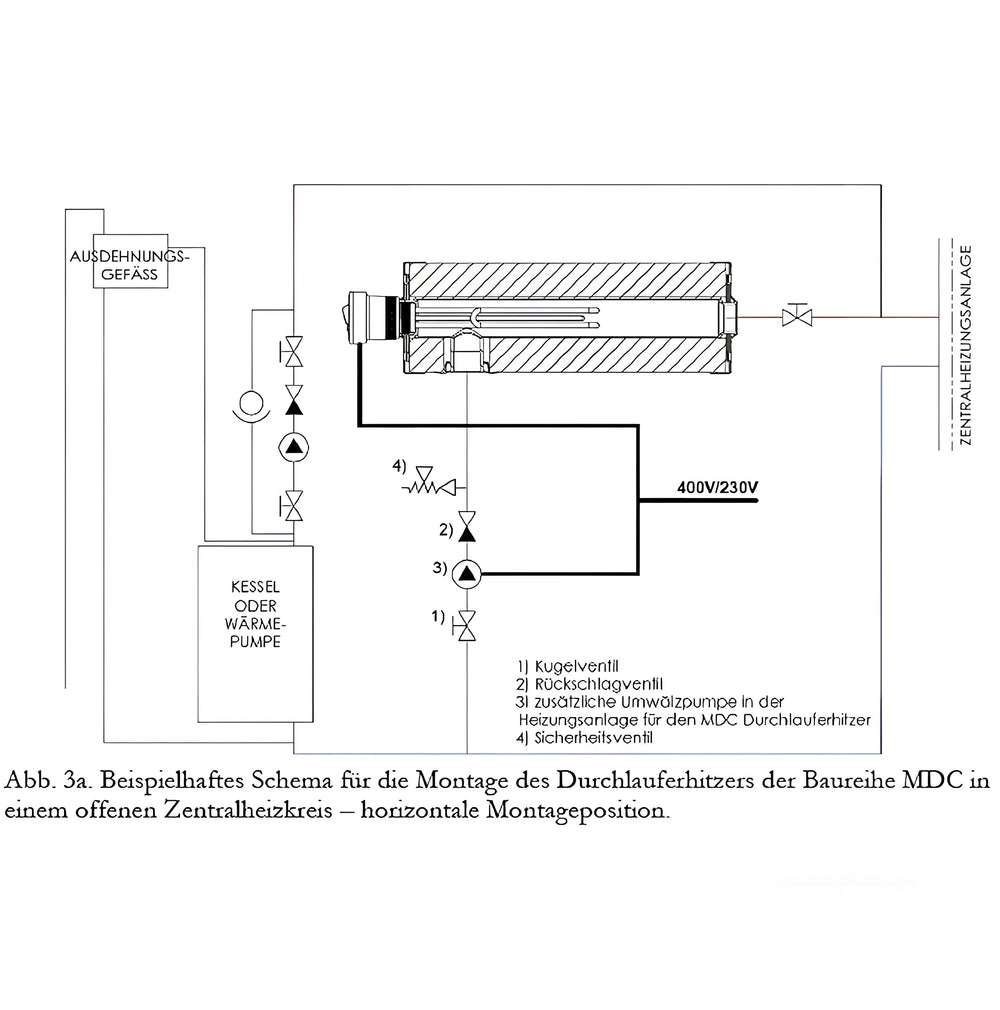 Das Nachheizmodul MDC 320 integriert sich problemlos in offene und geschlossene Heizkreise und kann sowohl zur dauerhaften UnterstĂŒtzung als auch als Notheizung genutzt werden. Es hilft dabei, ĂŒberschĂŒssige Energie effizient einzusetzen, beispielsweise aus Photovoltaikanlagen, um den Heizbedarf zu decken.