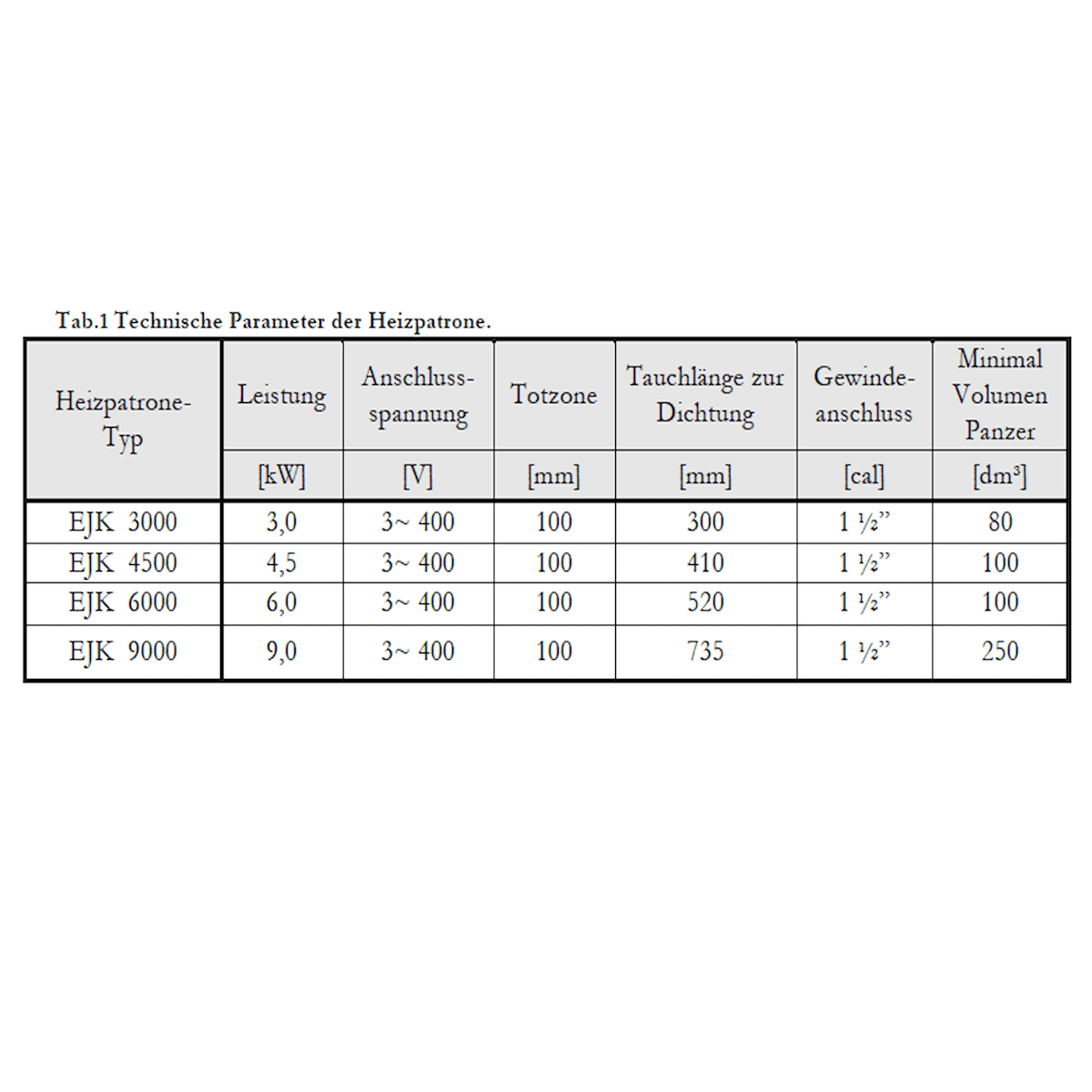 Το θερμαντικό φυσίγγιο του πλήρους πακέτου διατίθεται σε διαφορετικές κατηγορίες ισχύος, ειδικά σχεδιασμένες για 1,5 kW, 2,0 kW, 3,0 kW στα 230 V και 4,5 kW, 6,0 kW και 9,0 kW στα 400 V. Αυτές οι παραλλαγές επιτρέπουν τη βέλτιστη προσαρμογή στις ατομικές ενεργειακές απαιτήσεις του συστήματος θέρμανσης.