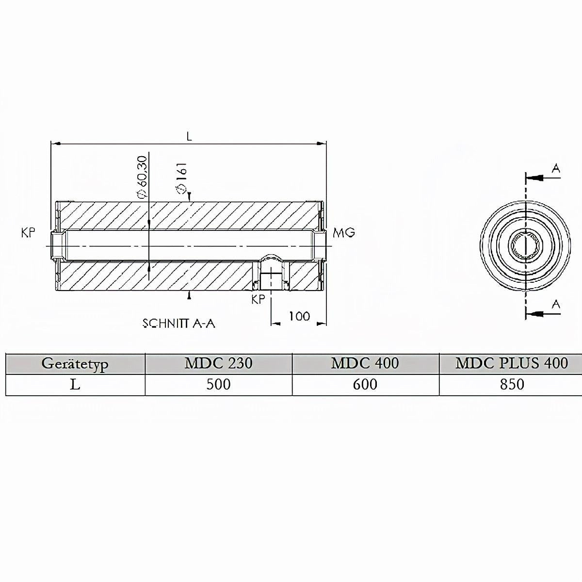 • Διαστάσεις MDC400 (διάμετρος x μήκος): 161 mm x 600 mm