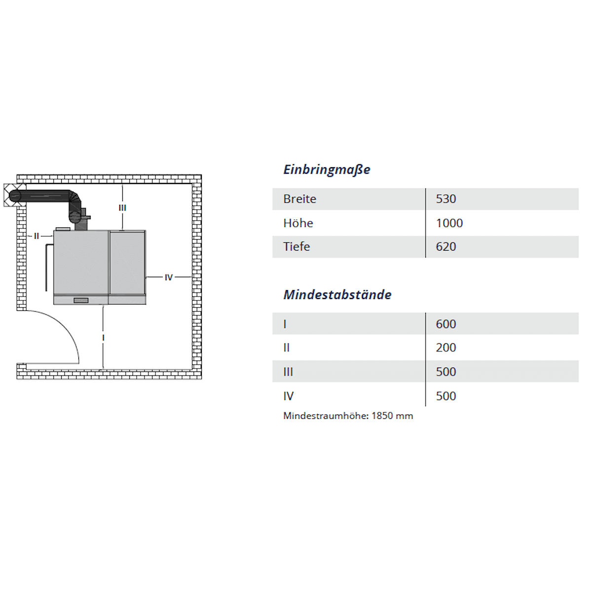 • Conexión de tubo de humos 130 mm