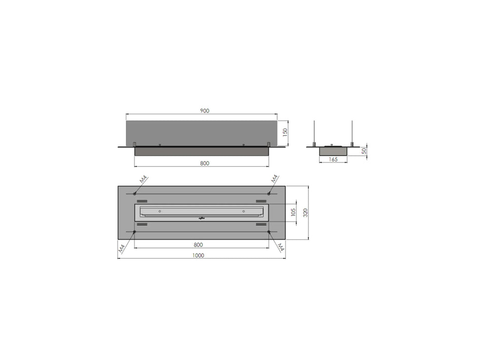 INSERT 1000 biokamin – sisseehitatud terasest kamin 800 mm põlemiselemendiga