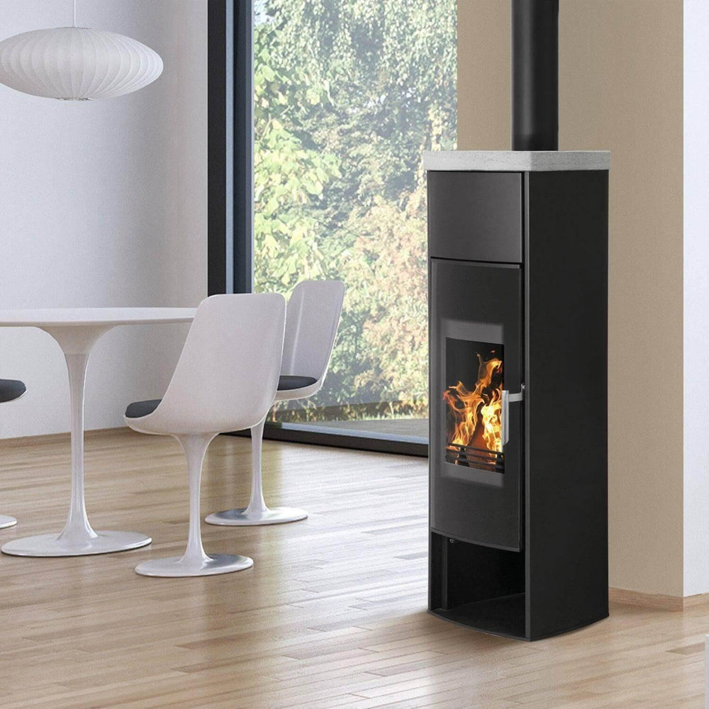 Põlemiskambri kohal asuvad akumulatsioonikivid neelavad põlemise ajal osa soojusest ja vabastavad selle pärast tule kustumist tagasi tuppa. Lisaks sellele, et elegantne 7 kW ahi mitte ainult ei küta ruumi, vaid toetab ka teie keskküttesüsteemi oma integreeritud veesoojusvaheti kaudu.