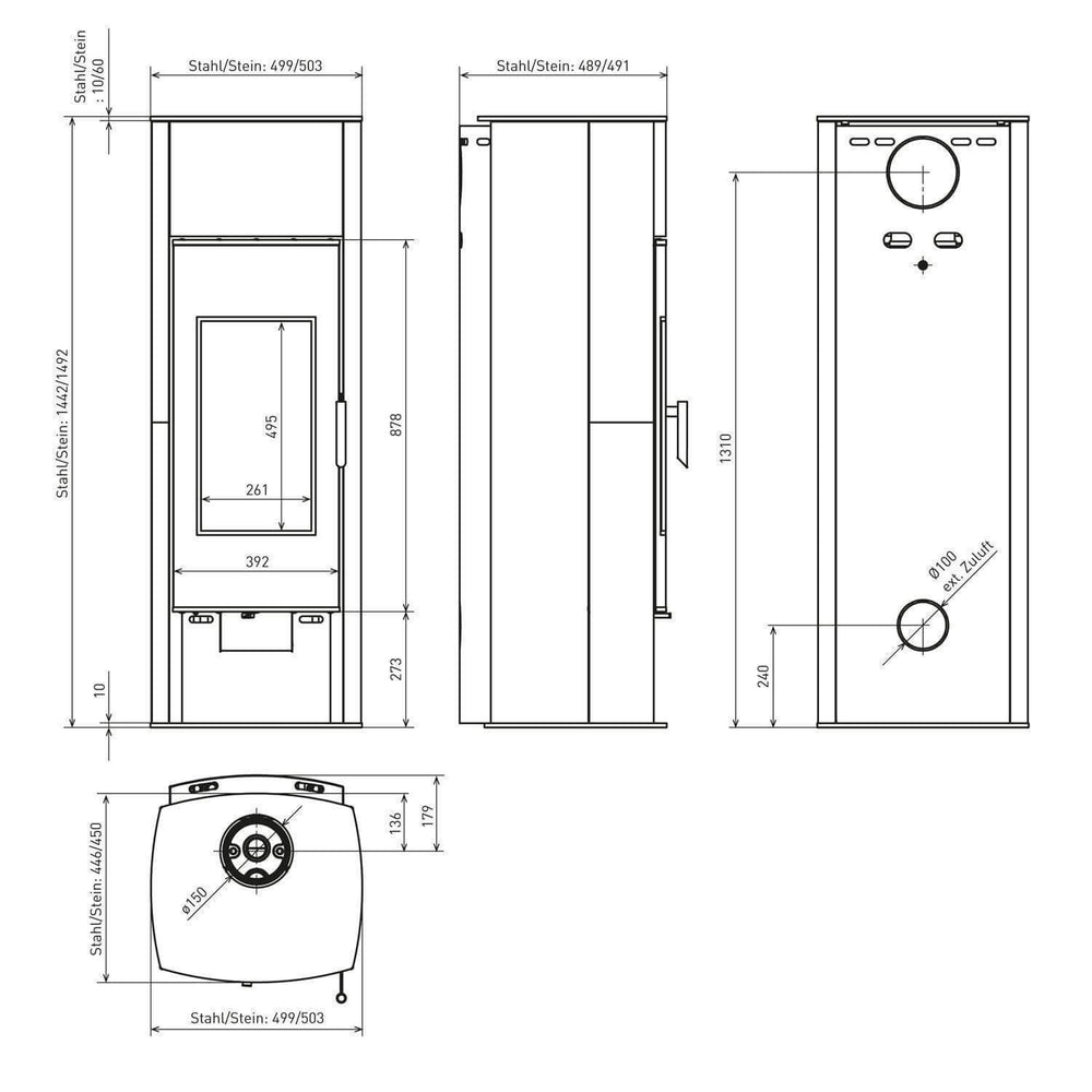 - Põlemiskambri mõõtmed (K x L): 495 x 261 mm