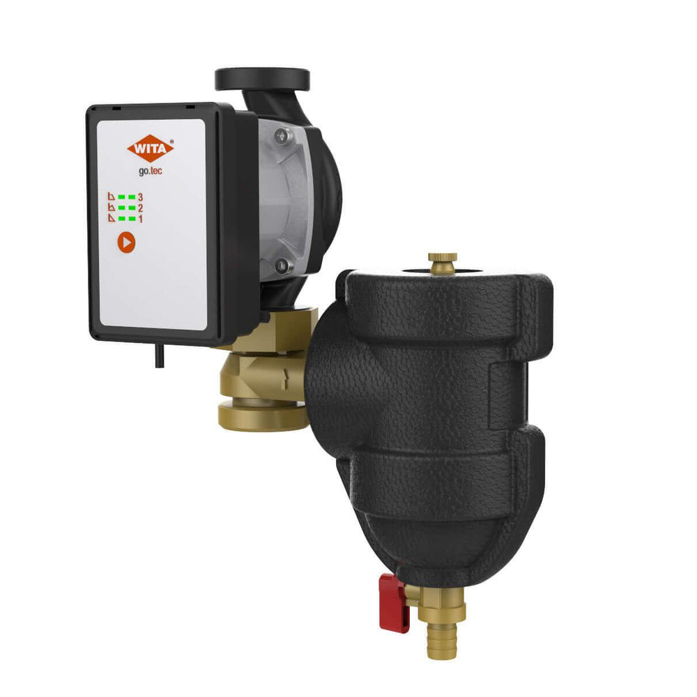 A WITA nagy hatékonyságú szivattyúegység a fejlett technológiát praktikus megoldásokkal ötvözi, hogy hatékonyan és megbízhatóan működtesse rendszerét. go.tec A nagy hatékonyságú szivattyú nagy teljesítményű, energiatakarékos szivattyúzási megoldást biztosít, míg a WITA-Trap MS L50 optimális védelmet nyújt a szennyeződés és a károsodás ellen. Együttesen tökéletes párost alkotnak egy modern, alacsony karbantartási igényű fűtési, hűtési vagy napelemes rendszerhez.