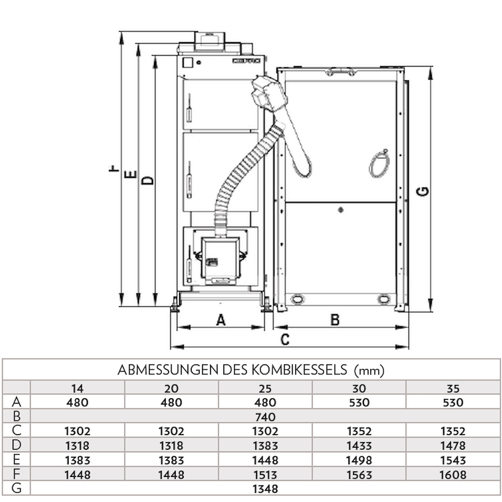 La Defro Komfort Ekopell da 25 kW convince per la sua capacità di alternare l'alimentazione a pellet e a legna. Il kit di conversione a legna incluso semplifica l'utilizzo di combustibili alternativi e garantisce la massima flessibilità nell'approvvigionamento energetico.