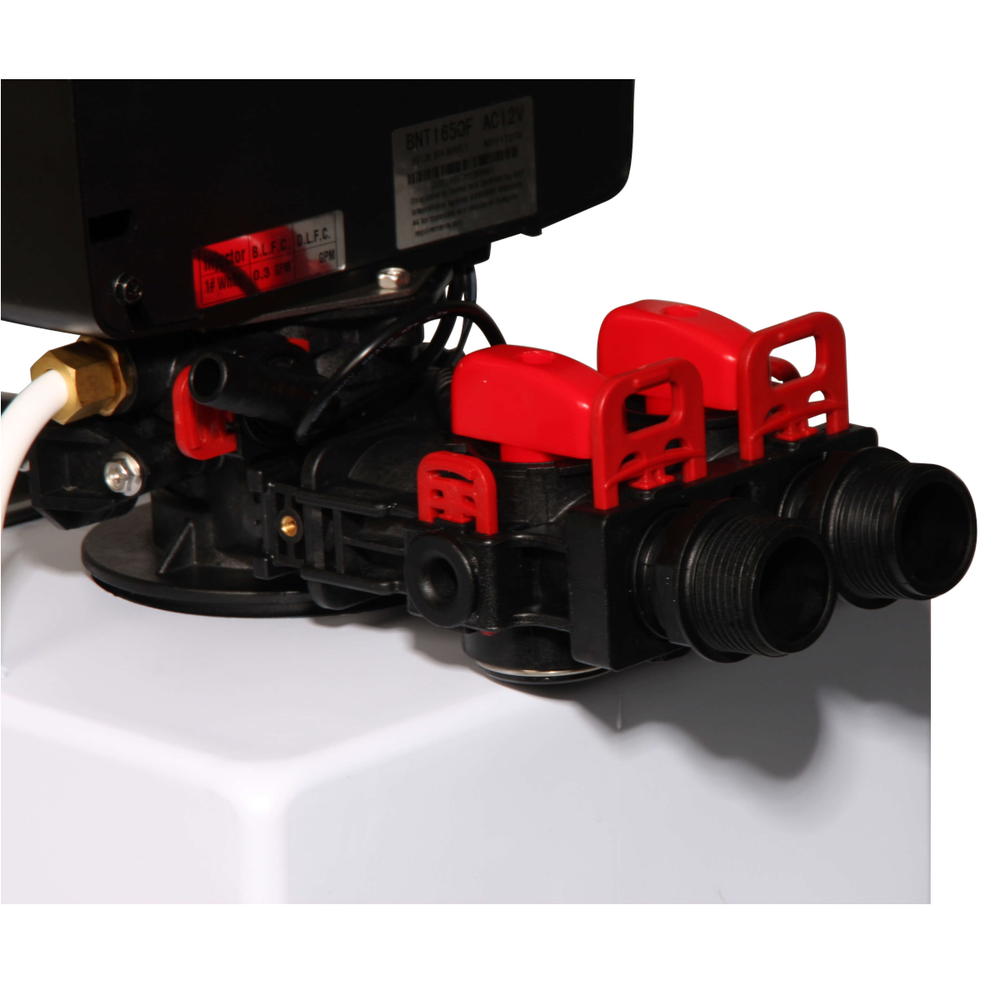 Il sistema è completato dalla valvola di controllo della quantità d'acqua BNT 1650, montata direttamente sulla bombola a pressione e che controlla il processo di rigenerazione in modo completamente automatico.