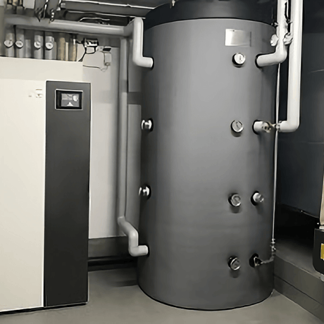 Energijos kaupimo bakas be šilumokaičio, skirtas šildymo, saulės ir kietojo kuro sistemoms. Tūris: 1000 litrų, izoliacija: 100 mm itin standžios PU putos.