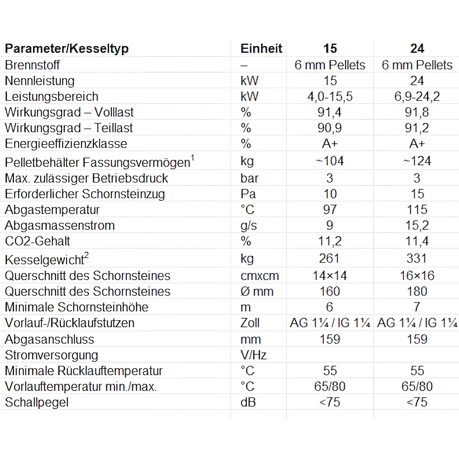 Galima vardinė galia: 15 kW ir 24 kW; Apskritai serija apima platų galios diapazoną nuo maždaug. nuo 11 iki 30 kW. Įrenginys atitinka 5 emisijos klasę bei Ekologinio projektavimo standarto reikalavimus ir priskiriamas A+ energijos vartojimo efektyvumo klasei.