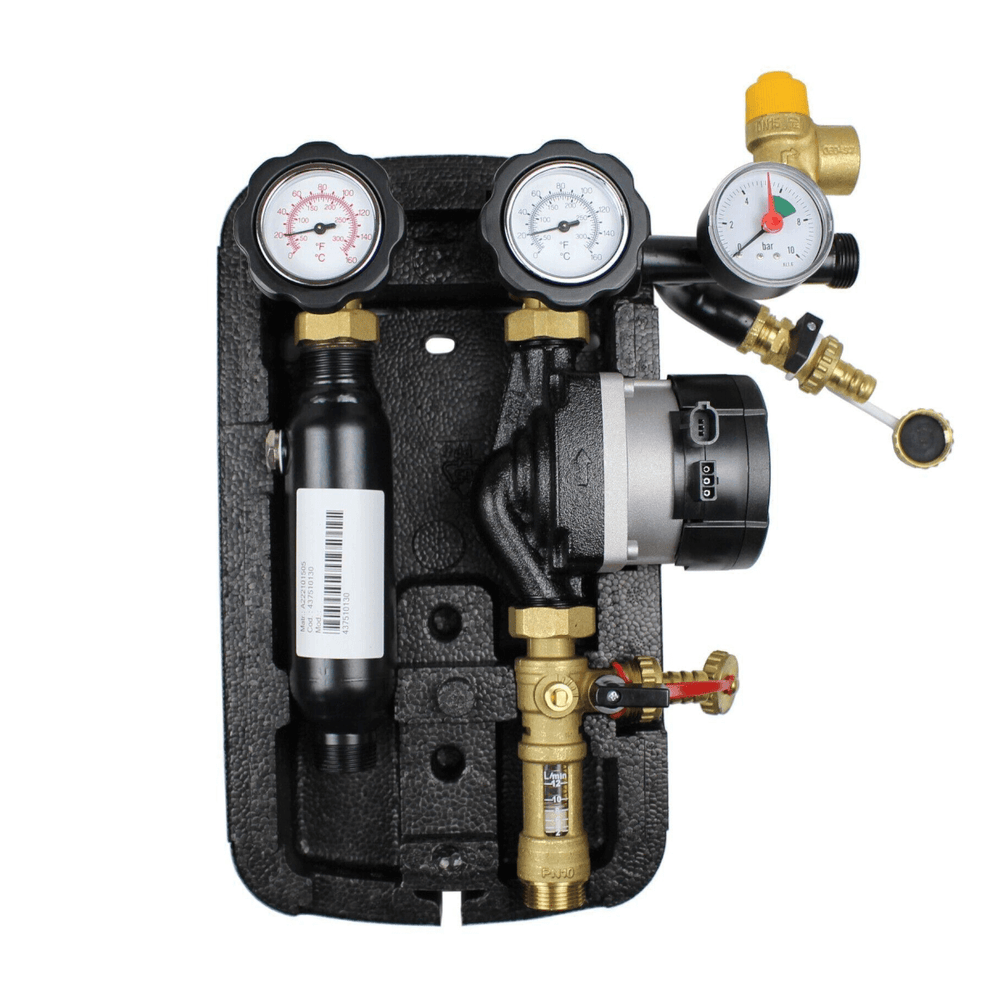 Atloka lodveida vārsti, katrs aprīkots ar termometru, veicina precīzu sistēmas temperatūras uzraudzību. Izsmalcināts dizains un augstas kvalitātes komponenti padara šo saules staciju par uzticamu izvēli prasīgiem lietojumiem.