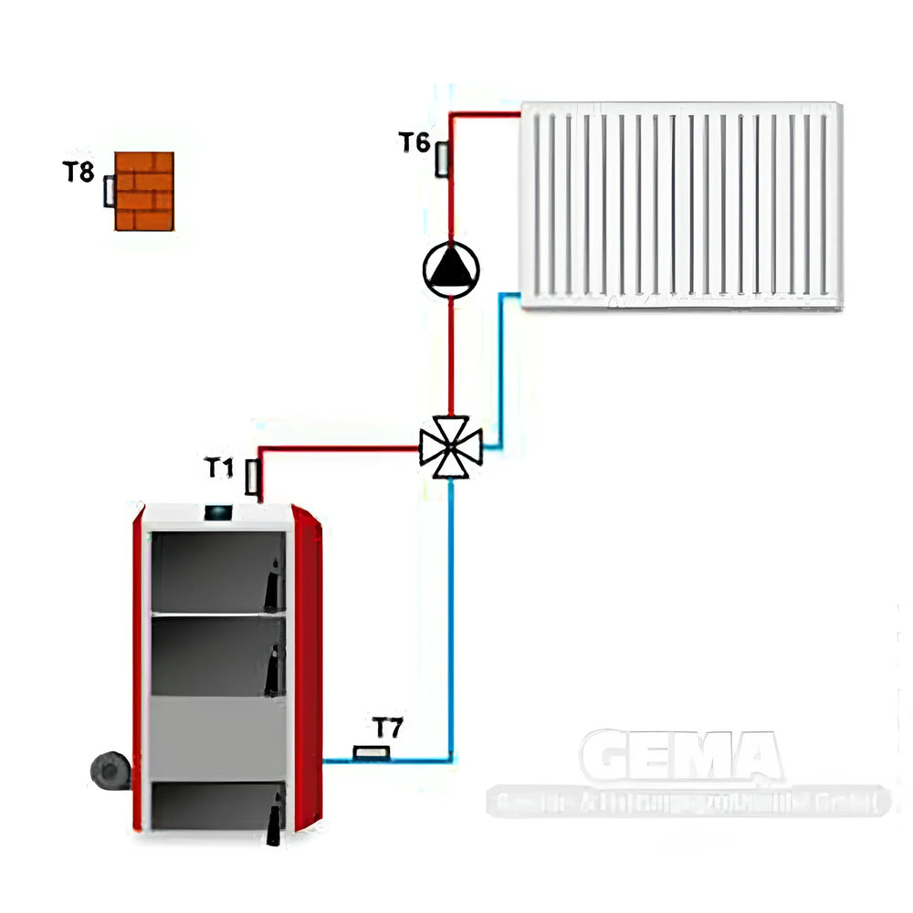 The second function of the heating control system is the weather-dependent, room-thermostat-controlled, or fixed-value-controlled control of a heating circuit mixer. Of course, the controller also controls a circulation pump and calibrates itself to the respective actuator.