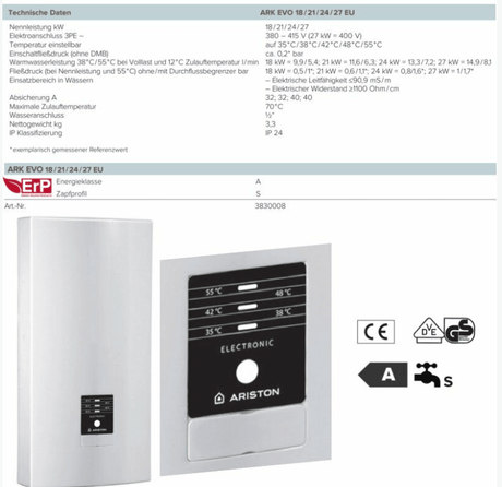 Preço de venda 225,21 € Preço normal 231,68 €Preço básico /Não disponívelEstoque limitado Ariston