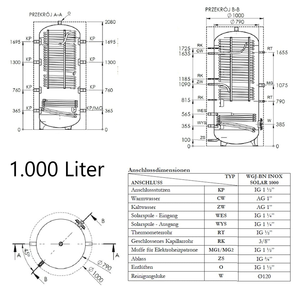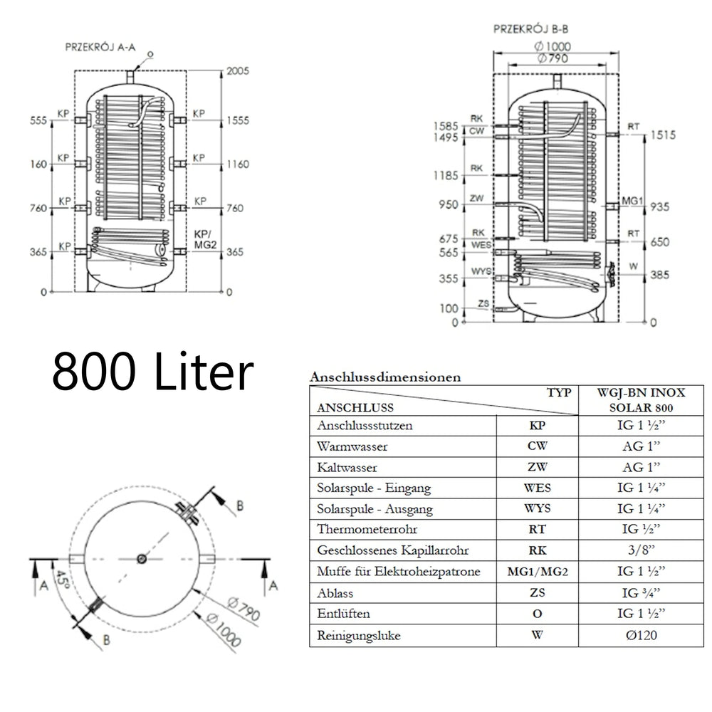 WGJ-BN INOX SOLAR este un rezervor tampon combinat pentru încălzirea apei calde menajere, cu o serpentina de încălzire din oțel inoxidabil integrată ca schimbător de căldură. A fost proiectat pentru integrarea în sisteme de încălzire centrală cu cazane, pompe de căldură sau pentru utilizarea căldurii solare și permite atât stocarea energiei de încălzire, cât și încălzirea continuă a apei potabile.
