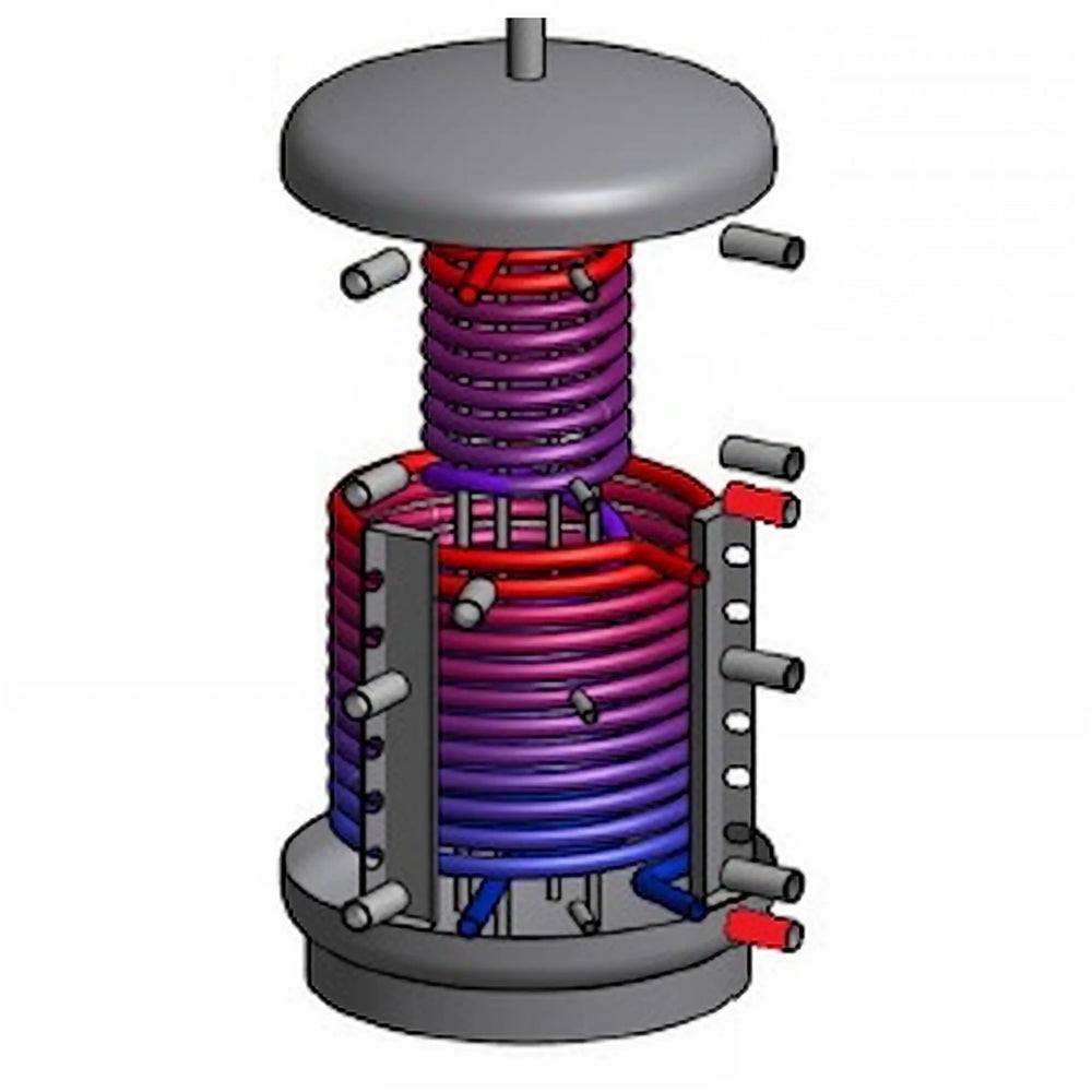 Vlnitá rúrka z nehrdzavejúcej ocele navinutá vo vnútri zásobníka nepretržite ohrieva čerstvú pitnú vodu a znižuje potrebu zásobníka teplej úžitkovej vody, čím minimalizuje riziko rastu baktérie Legionella. Veľká plocha výmenníka tepla z nehrdzavejúcej ocele zaisťuje vysoký výkon teplej vody; nie je potrebná obetná anóda, takže zásobník nevyžaduje údržbu.