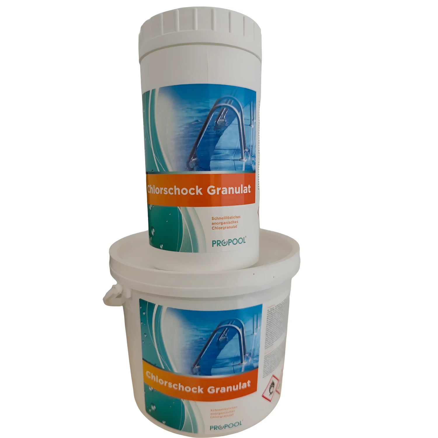 De Klorchockgranulat Den erbjuder en effektiv lösning för desinfektion av simbassänger och säkerställer snabb vattenrening. Den kännetecknas av sin snabba löslighet, vilket gör att den kan arbeta snabbt och tillförlitligt för att eliminera alger, bakterier och svampar.