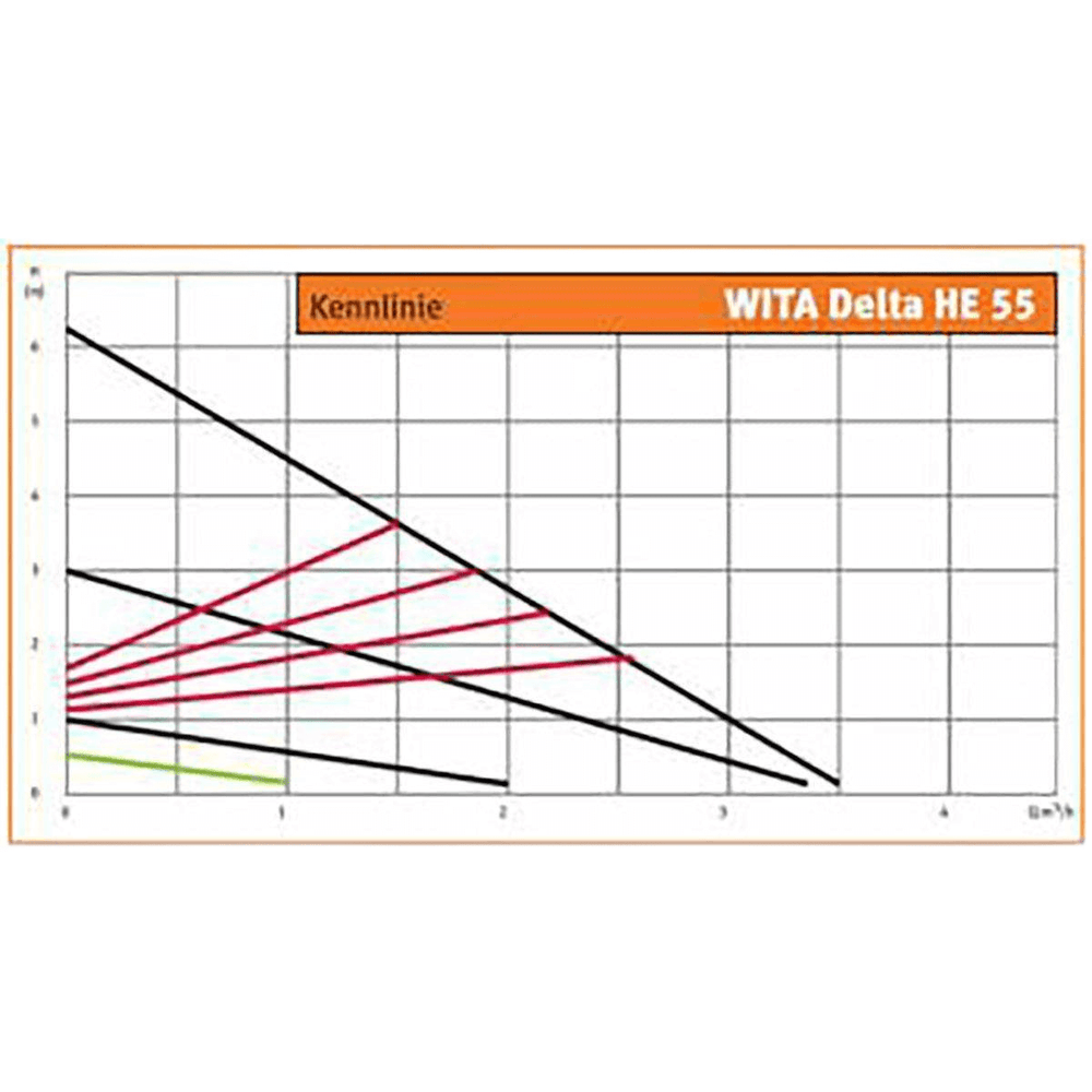 WITA Delta Plus HE 55-15 S imponerar inte bara med sin funktionalitet utan även med sina tekniska egenskaper. Med en tryckhöjd på upp till 6 m och ett flöde på 3,2 m³/h uppfyller den även de mest krävande kraven. Dessa värden garanterar kraftfull cirkulation i värme- och solcellssystem, oavsett anläggningens storlek.